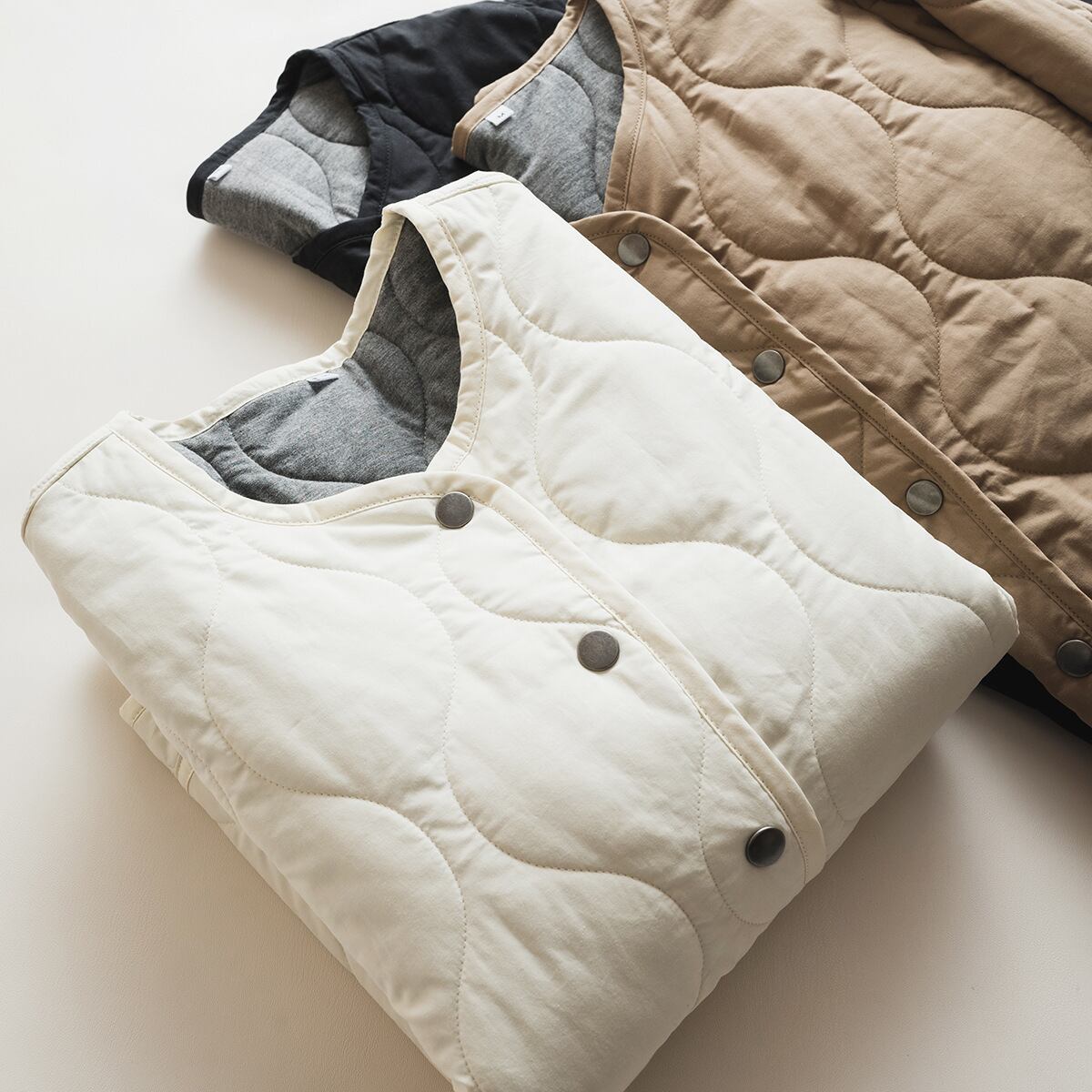 落ち着いた時間を過ごすためのキルティングジャケットです。